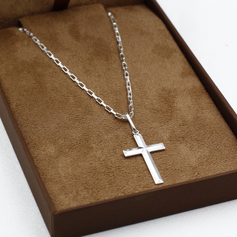 Corrente De Prata 925 masculina 60cm malha cartie Pingente Crucifixo quinado