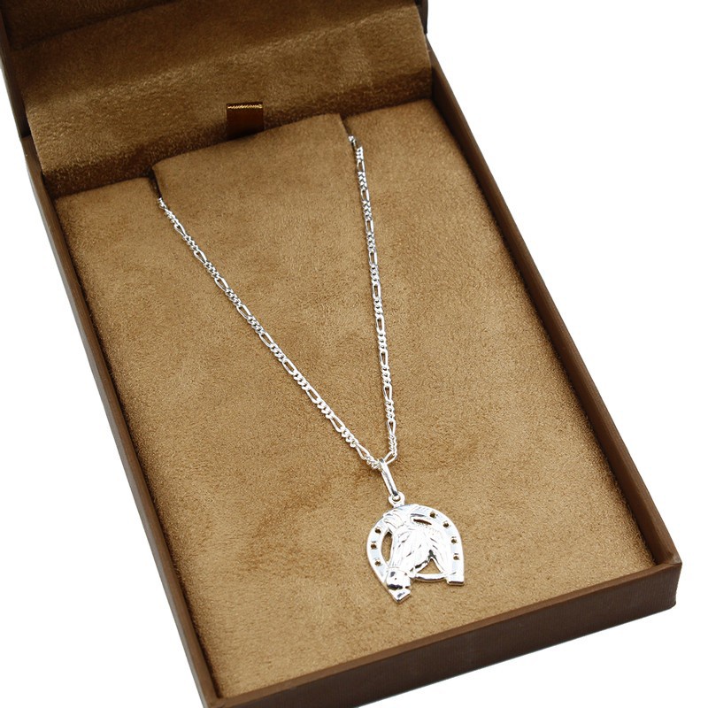 Corrente de prata 925 masculina 70cm 3x1 fígaro 70cm pingente ferradura