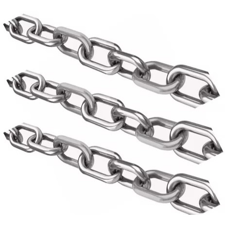 O preço da corrente está por metro linear Escolha quantos metros quer e lhe enviamos em um só lance, por exemplo , se comprar 10 unidades de 01 metro te enviaremos um lance único de 10metros e assim por diante Corrente 5/32 - 4,0mm Corrente em aço carbono zincado Para usos diversos que não necessitem calibração - Corrente Soldada Zincada - Diâmetro: 4,0 mm (5/32") - Peso por metro: 304 gramas - Resistência Tração: 200 Kgf - Resistência Ruptura: 800 Kgf - Material: Aço Zincado