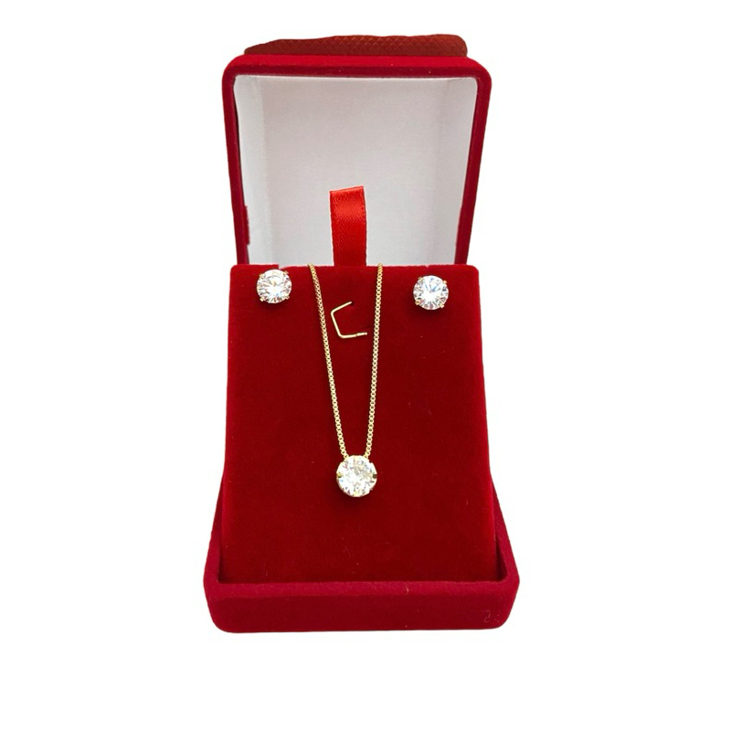 Corrente Feminina e Brinco Banhado a Ouro 18k Ponto de Luz Zircônia + Garantia
