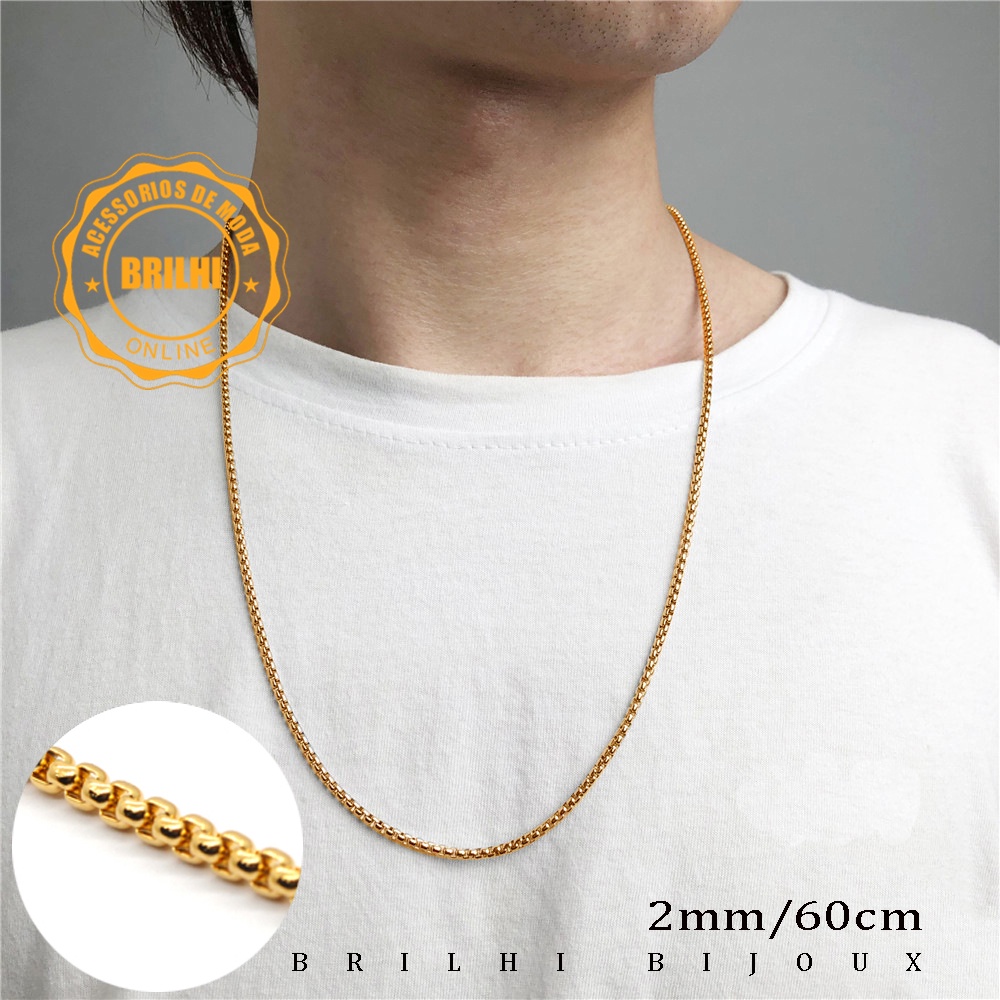 | Corrente fina de contas de aço inoxidável em tom dourado este produto | R$ 19,00 | — | 4.8/5 | 4 |
