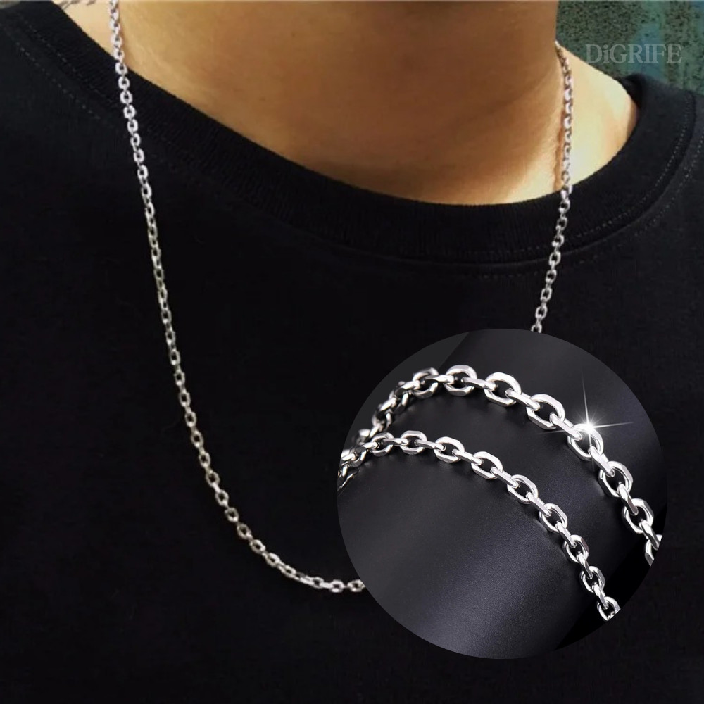 Corrente Masculina 3mm Modelo Cadeado Prata Aço Inoxidável Legítimo Corrente confeccionada em aço 316L Largura da corrente: 3mm Comprimento da corrente: 60cm ALGUMAS QUALIDADES DE NOSSAS JOIAS: ✅ Não fica preta ✅ Não oxida ✅ Não escurece ✅ Pode usar no mar ou na piscina ✅ Pode usar no banho ✅ Pode usar em atividades físicas ✅ É 100% Antialérgico ✅ Tem Alto brilho ✅ Resistente a riscos Por quê comprar uma joia de Aço? O aço inoxidável 316L é um material amplamente utilizado na fabricação de joias devido às suas diversas qualidades e propriedades. Aqui estão algumas das principais qualidades das joias em aço inoxidável 316L: O aço inoxidável 316L é conhecido por sua resistência à corrosão e tração. Isso significa que as joias feitas desse material têm uma maior durabilidade e são menos propensas a manchar, enferrujar ou perder o brilho ao longo do tempo. BOAS COMPRAS!