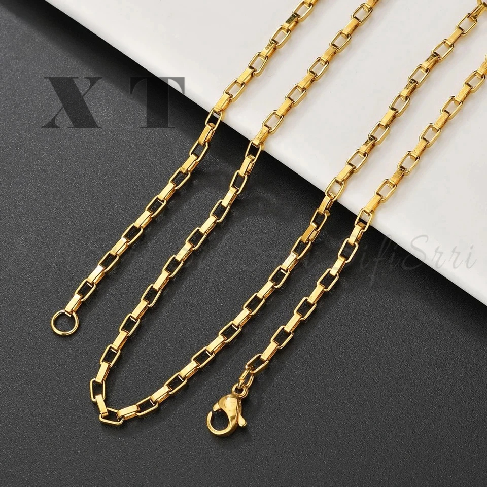 Corrente masculina cadeia de treliça aço inoxidável a 18k,Colar Fina com pingente de Tudo Poços de aço inoxidável