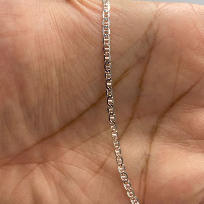 Corrente Masculina de Prata 925 Piastrine 2.5mm Adicione um toque de sofisticação ao seu visual com a Corrente Masculina de Prata 925 Piastrine 2.5mm. Feita de prata 925 de alta qualidade, esta corrente possui um design clássico e elegante. Especificações: Tamanhos: 60cm / 70cm / 80cm Largura: 0,25cm (2.5mm) Fecho: Mosquetão Pesos: 4.53g (60cm) / 5.16g (70cm) / 5.62g (80cm) Material: Prata 925 Características Principais: ✔ Design Clássico: A corrente Piastrine oferece um visual tradicional e sofisticado. ✔ Alta Qualidade: Confeccionada em prata 925, garantindo durabilidade e brilho duradouro. ✔ Versátil: Disponível em três tamanhos para um ajuste perfeito. ✔ Fecho Seguro: O fecho mosquetão oferece segurança e praticidade ao colocar e retirar a corrente. Descrição Detalhada: A Corrente Masculina de Prata 925 Piastrine 2.5mm é ideal para homens que buscam um acessório versátil e estiloso. Seu design elegante a torna perfeita para uso diário ou ocasiões especiais, podendo ser usada sozinha ou com pingentes. Benefícios da Prata 925: A Prata 925 é conhecida por sua resistência e brilho, tornando esta corrente uma excelente escolha para quem procura acessórios que mantêm sua beleza ao longo do tempo. Cuidados com a Corrente: Para manter a Corrente Masculina de Prata 925 Piastrine 2.5mm sempre brilhante, evite contato com produtos químicos e limpe regularmente com um pano macio. Guarde separadamente para evitar arranhões. Adquira a Sua: Adicione um toque de estilo e sofisticação ao seu visual com a Corrente Masculina de Prata 925 Piastrine 2.5mm. Perfeita para presentear e para complementar seu estilo com elegância.