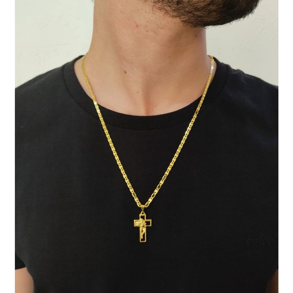 Corrente Masculina Piastrine com Pingente Cruz Face de Jesus 100% Moeda Antiga