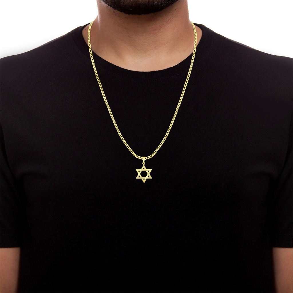 Corrente Masculina Piastrini e Pingente Estrela de Davi Banhados a Ouro 18k