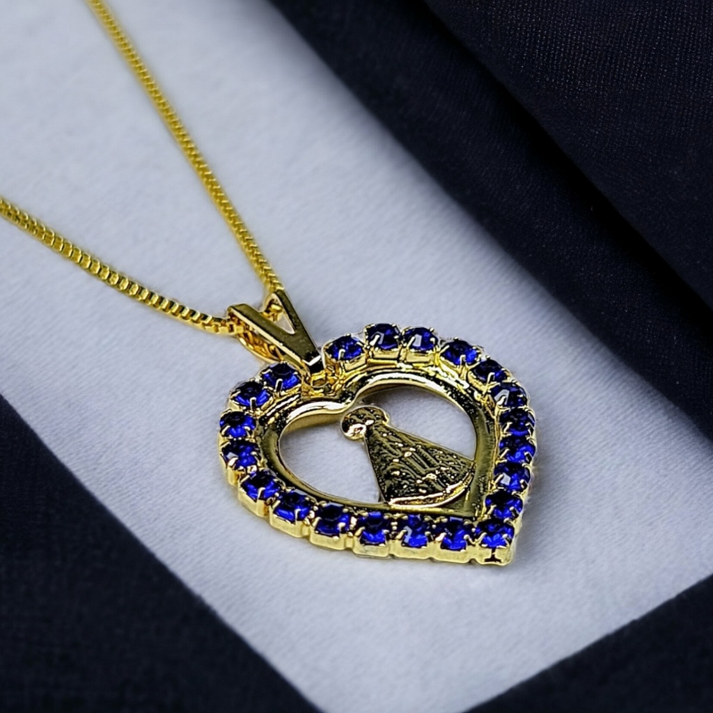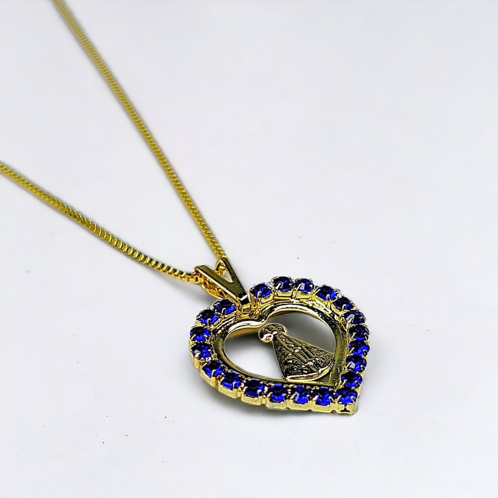 Corrente Nossa Senhora Aparecida Folheada Strass Azul Cordão Religioso