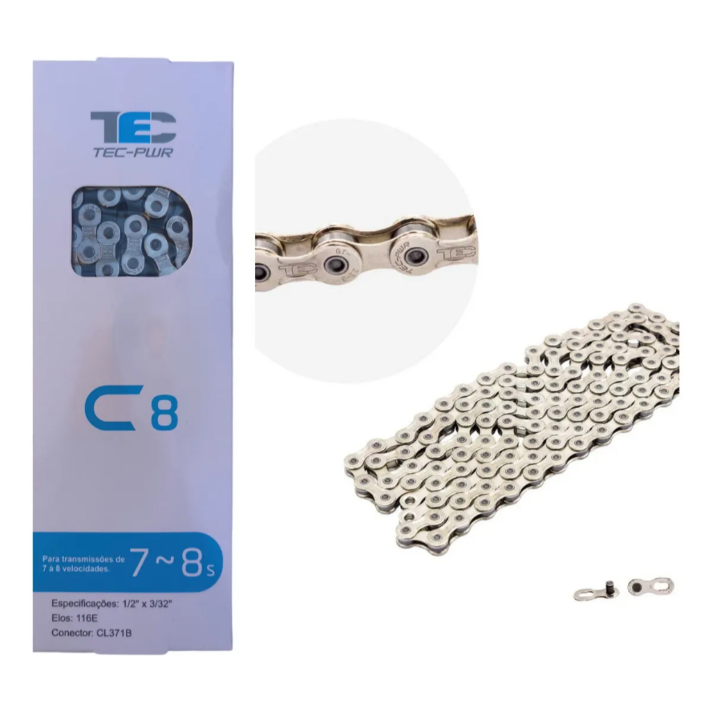 Corrente Tec C8 Com Power Link 7v 8v Index Bike Compatível Com Shimano Sram