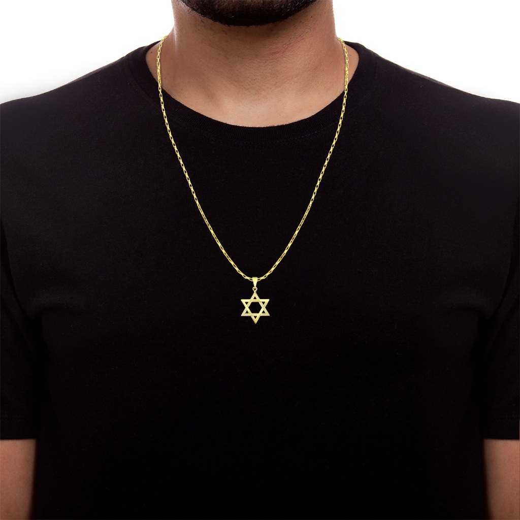 Corrente Tijolinho com Pingente Estrela de Davi Banhados a ouro18k Cordão Cartier masculino