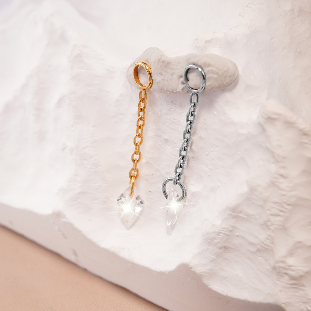 Corrente Titânio Pvd Para Piercing Com Pingente Zircônia Cravejado - Orelha Cartilagem Helix Tragus Conch
