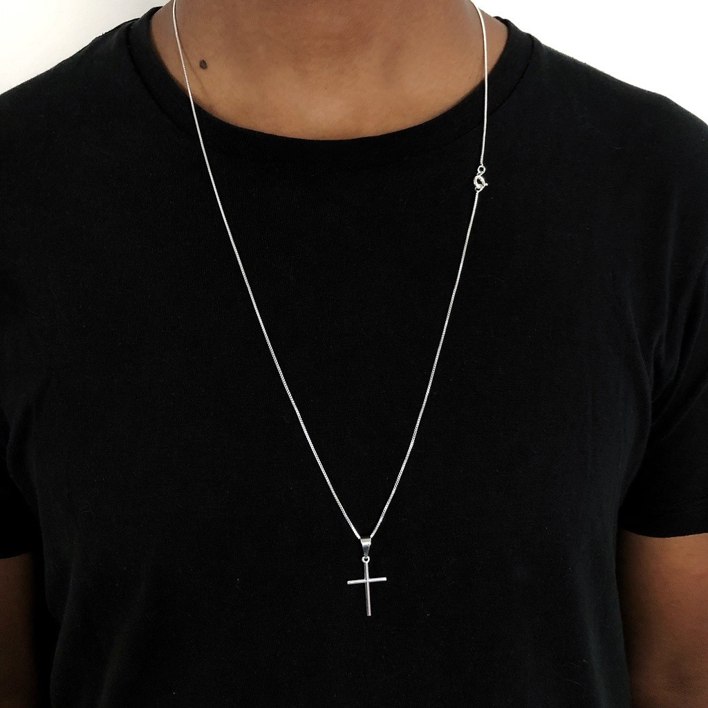 Corrente Veneziana aco inox com Pingente Cruz Palito Cordão Masculino com Crucifixo