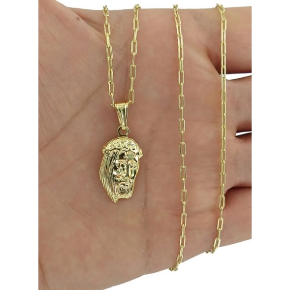 Correntinha Colar Corrente Masculina Banhado A Ouro 18k + Pingente Face Cristo
