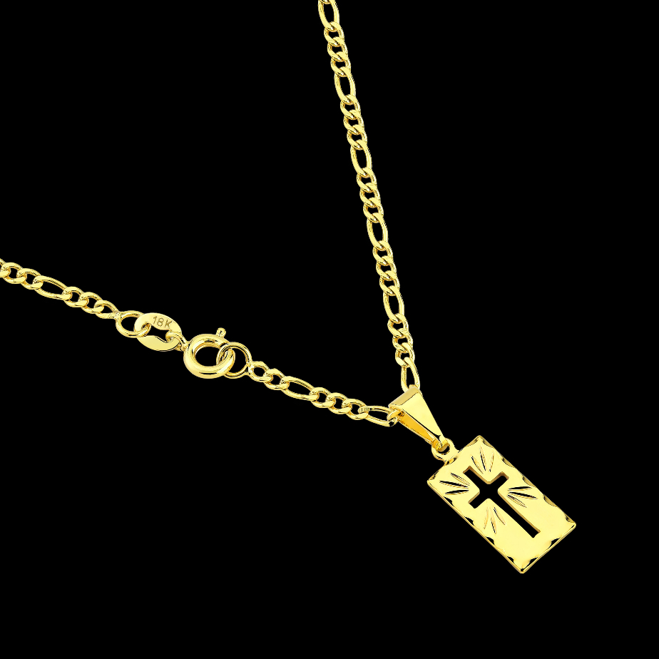 Correntinha Colar Masculino 3x1 com Pingente Placa Cruz Vazada Banhado a Ouro 18k