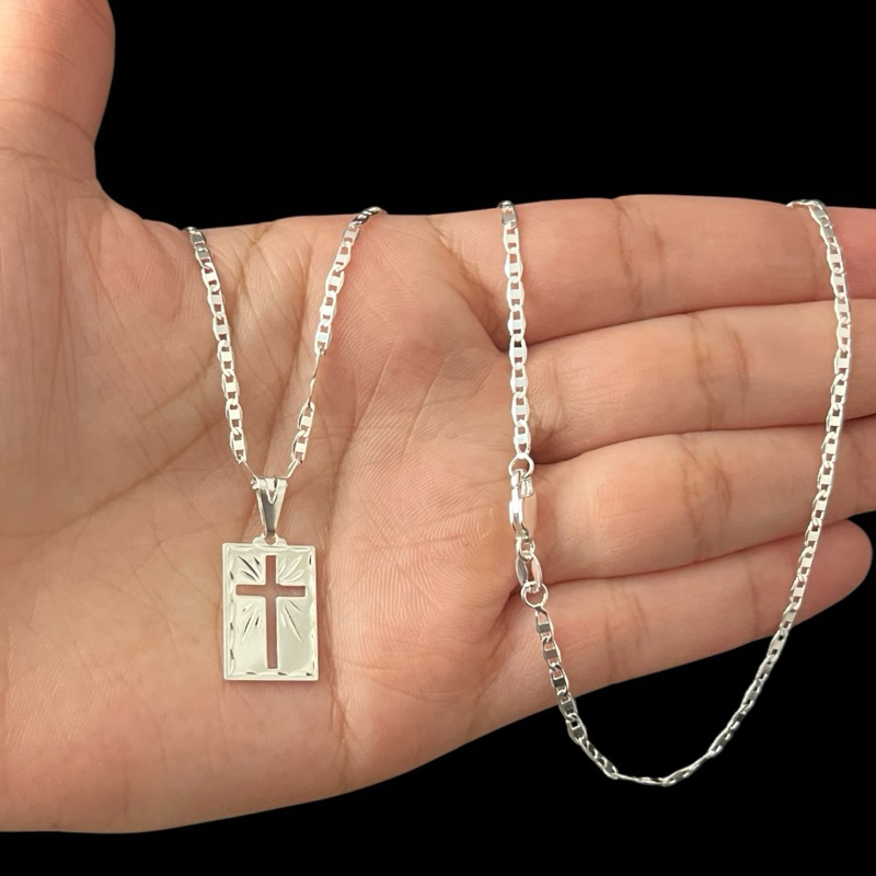 Colar Corrente Masculina Piastrini Fina Banhada A Prata + Pingente Cruz plaquinha Fecho italiano Uma peça Elegante Que Cairá Bem Com Qualquer Look. Qualidade é Beleza. Especificações da Corrente: - Corrente Modelo Piastrini - Espessura 2MM - Comprimento 45cm 50cm 60cm 70cm ou 80cm - Fecho italiano o mesmo modelo disponível na última foto do anúncio. - Pingente Cruz Plaquinha PERGUNTAS FREQUENTES: PODE MOLHAR, TOMAR BANHO, PISCINA, MAR? Não, pois trata-se de uma peça banhada a Prata, e contém substâncias que podem corroer o banho da peça diminuindo então sua vida útil. SAI A COR COM O SUOR? Não, mas em dias que suamos bastante com a peça no corpo é aconselhável limpá-la no final do dia para o prolongamento da vida útil. A COR É PARECIDA COM A PRATA? Sim, a cor é muito semelhante a prata 925. A PEÇA PRETEJA/MAREIA/FICA PRETA/ENFERRUJA? Não, tendo os cuidados necessários essa peça pode durar muito tempo com banho da Prata ainda em excelente estado! COMO LIMPAR A PEÇA? Com sabão neutro e água corrente, é só jogar o sabão em cima da peça e esfregar uma mão na outra, como se estivesse lavando as mãos, logo após de limpar, é recomendado secar a peça com uma toalha e também utilizar o secador em temperatura ambiente por pelo menos 1 minuto para secar completamente sua joia folheada/banhada. ATENÇÃO: única ocasião que é aconselhável molhar a peça é quando se faz a limpeza da mesma.