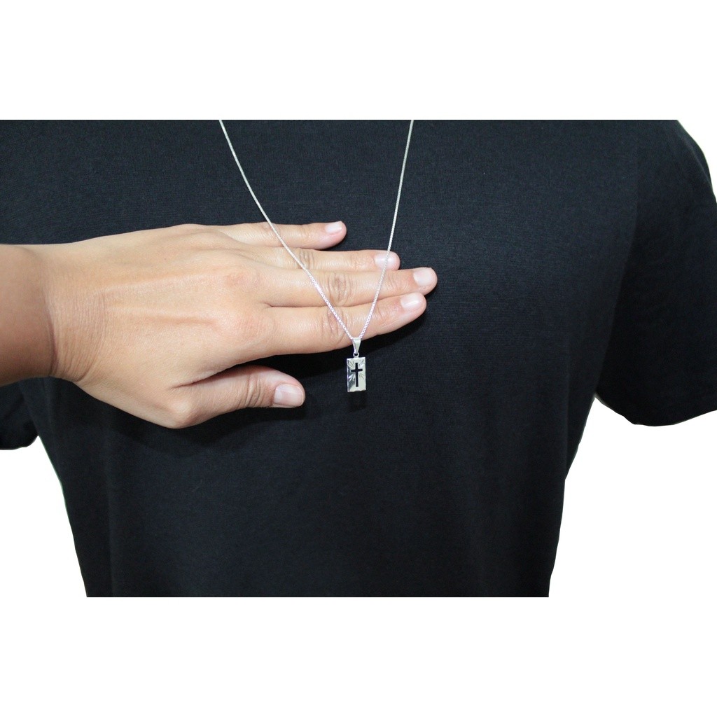 Correntinha Masculina 70 cm Banhado A Prata 925 + Pingente Placa Cruz