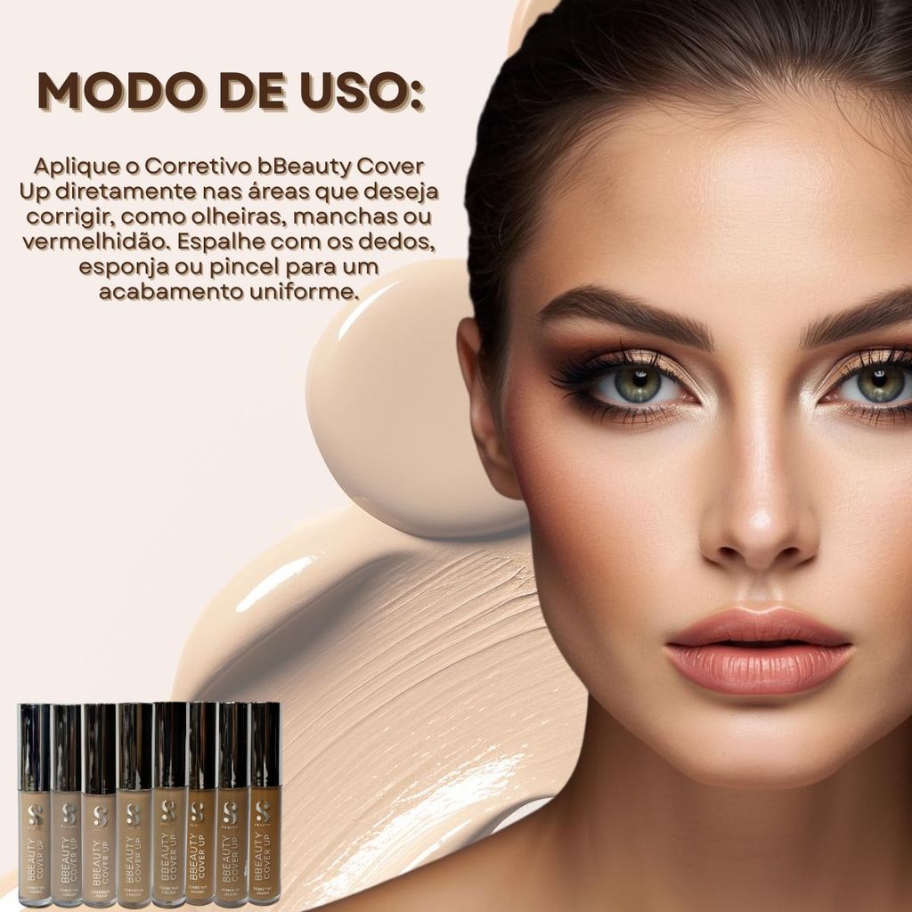 Corretivo Líquido BBeauty Cover Up – Alta Performance, Precisão e Acabamento Impecável O Corretivo Líquido BBeauty Cover Up foi desenvolvido para entregar alta cobertura com acabamento natural, garantindo correção precisa de olheiras, manchas e imperfeições com tecnologia de longa duração. Eleve o nível da sua maquiagem com um corretivo que oferece resultado profissional, textura ultrafluida e performance de alta fixação. Sua fórmula avançada proporciona aplicação uniforme, sem acúmulo, sem vincar e sem craquelar — ideal para quem exige qualidade em cada etapa da produção da pele. Benefícios: - Alta cobertura com sensação leve e natural. - Não craquela e não marca linhas finas. - Longa duração, ideal para rotinas intensas. - Corrige olheiras profundas, manchas e pequenas imperfeições. - Textura confortável, fácil de espalhar. - Acabamento uniforme com tecnologia soft focus. - Indicado para todos os tipos de pele. - Ideal para uso diário, profissional e em fotos/vídeos. Tons Disponíveis: 01 – Muito Claro 02 – Claro Neutro 03 – Claro Rosado 04 – Bege Claro 05 – Bege Médio 06 – Médio Quente 07 – Dourado Médio 08 – Bege Escuro / Caramelo. O BBeauty Cover Up utiliza pigmentos de alta pureza, garantindo cor estável e aderência superior à pele. Sua fórmula foi pensada para maximizar a cobertura sem perder naturalidade, possibilitando desde retoques sutis até produção de pele completa para fotos, vídeos e uso diário. Informações do Produto: - Textura: Líquida. - Cobertura: Média a alta (construível). - Acabamento: Natural e uniforme. - Indicação: Todos os tipos de pele. - Quantidade: 1 unidade. - Linha: BBeauty Cover Up. Valor referente a 01 unidade. Imagens meramente ilustrativas. Visualizações em mobile e desktop podem sofrer alterações de cor.