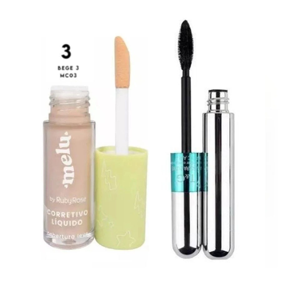 Corretivo Líquido Cobertura Leve Melu Ruby Rose 5ml Maquiagem + Máscara para cílios T&G Tango RÍMEL