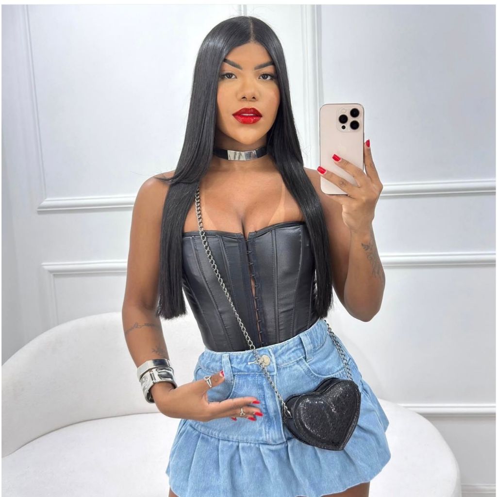 Corselet Aurora em Cirrê Acetinado com 6 Barbatanas e Colchetes Blusa feminina cropped tomara que caia tendencia