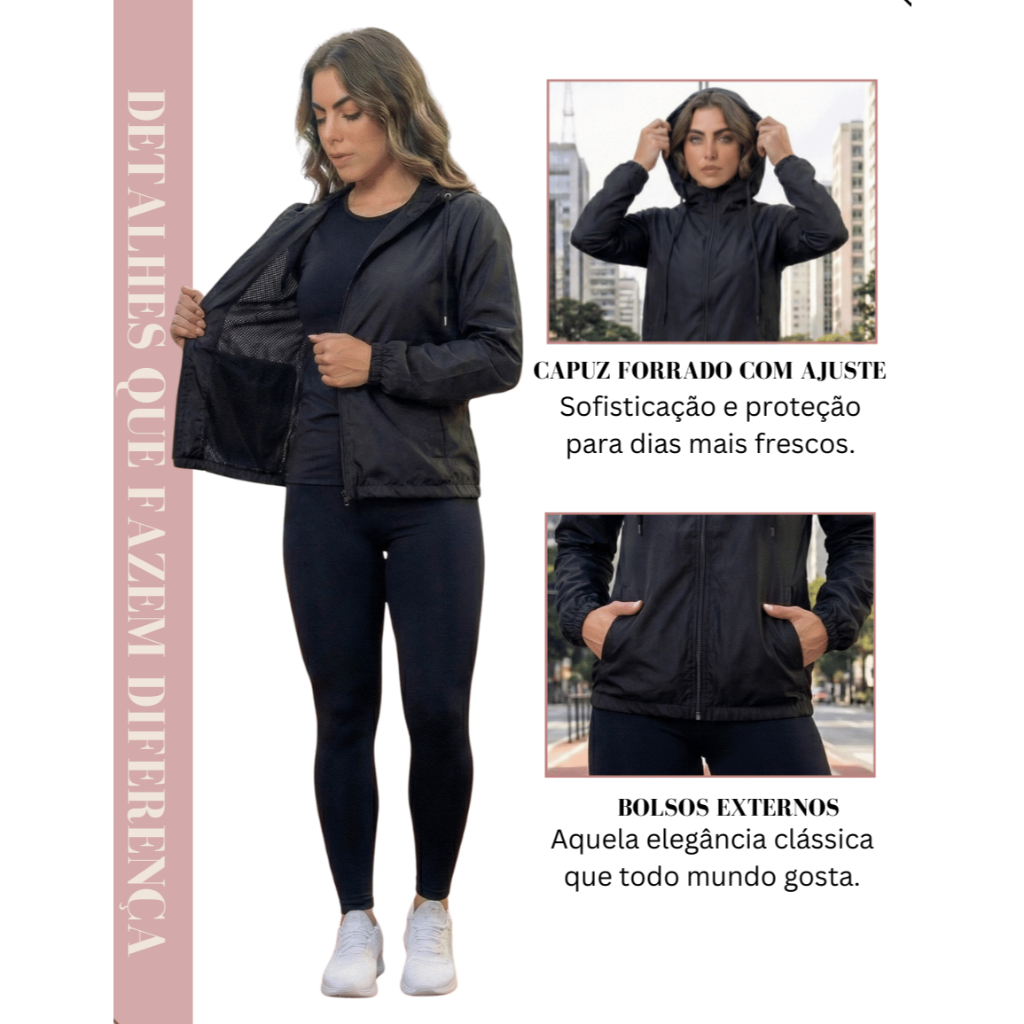 Corta Vento Jaqueta Casaco 100% Forrada Feminino Com Capuz Academia Esporte Ar Livre