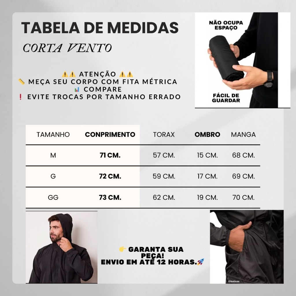 ENVIO RÁPIDO, EM MENOS DE 24 HORAS!! MOTIVOS PARA COMPRAR: Feito de tecido ultraleve que não amassa. Do varal direto para o armário! • Esteja sempre pronto, sem precisar passar ferro para usar. • Fácil de armazenar, ultracompacto, sem preocupação em amassar ao guardar. Peça versátil que atende diversas ocasiões: • Ideal para atividades físicas em geral (caminhadas, corridas e academia). • Perfeita para andar de moto. • Ótima para ciclismo ou simplesmente passeios de bicicleta. • Ideal para trabalho, festas ou baladas. capuz com ajuste. ✅ Sobre o Produto: ✔ Jaqueta corta vento ✔ 2 bolsos frontais ✔ Material Aspen 100% poliéster ✔ Cordão de ajuste para melhor ajuste ✔ Forração no capuz e bolsos para mais conforto ✔ Gola alta e capuz para proteção ✔ Design moderno e funcional ✔ Ideal para atividades ao ar livre e uso diário ✅ Cuidados com o Produto: ✔ Não utilizar como capa de chuva ✔ Certifique-se de escolher o tamanho correto para evitar trocas ✅ Observação: ✔ As medidas podem variar em até 2 cm para mais ou menos 🚚 Envio Super Rápido 🥰 Para dúvidas, estamos à disposição no chat