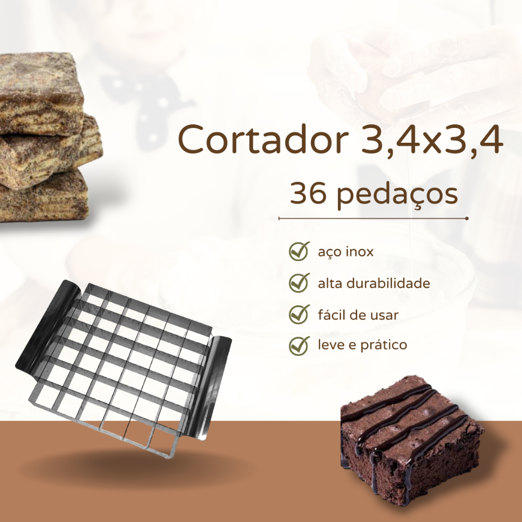 Cortador 3x3 Brownie c/36 pedaços Inox Com Alça