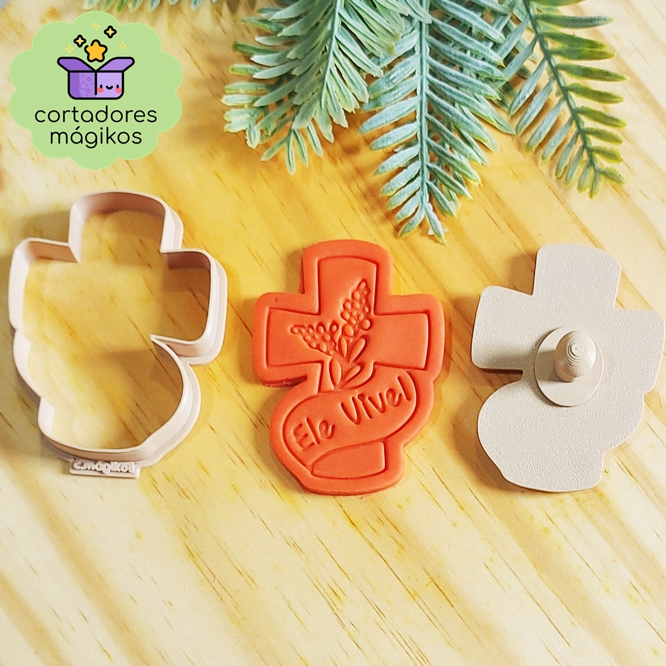 Cortador + Carimbo marcador Páscoa Cruz Jesus Ele Vive para Culinária ou Artesanato