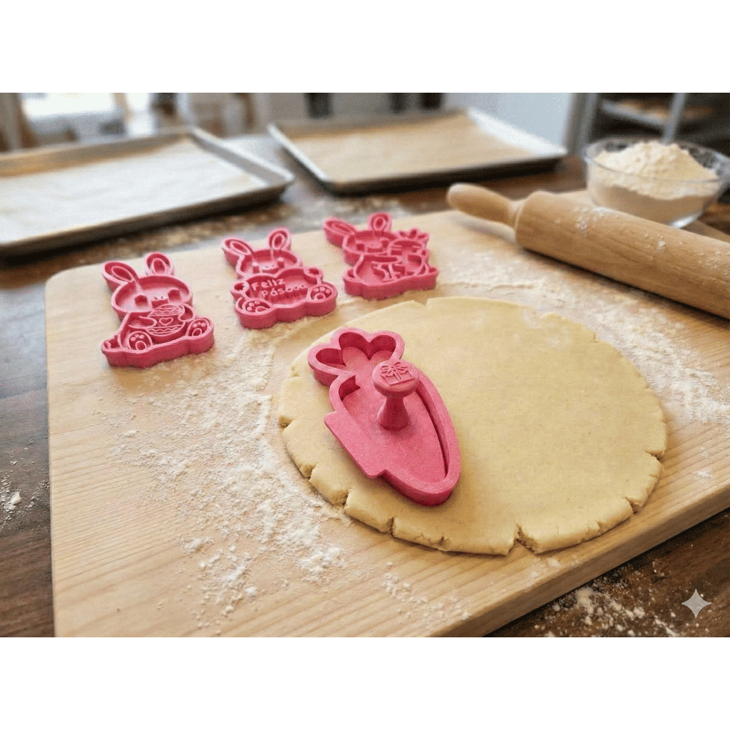 Cortador de Biscoito Páscoa com Puxador – Kit Cortadores Temáticos para Confeitaria e Biscoitos Decorados