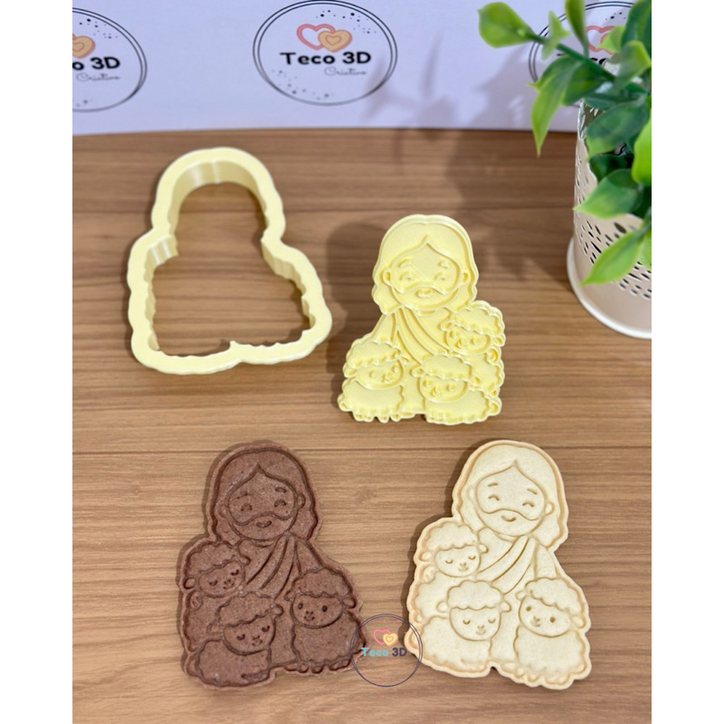 CORTADOR DE BISCOITO RELIGIOSO PÁSCOA BOM PASTOR OVELHINHAS + MOLDE MARCADOR CARIMBO 8 CM PARA MASSAS DE CONFEITARIA