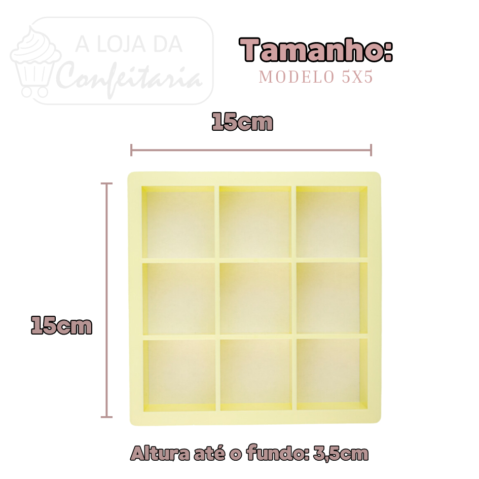 O Cortador de Brownie por Ana Brownie da Blue Star foi desenvolvido especialmente para você que trabalha com esse doce, e é assinado pela renomada Ana Brownie. Faça brownies com quem entende do assunto. Possui o corte preciso, evitando deperdícios, e é na altura ideal de 3,5cm, que garante o corte até o fim da forma. É padronizado, garantindo que todos os brownies sairão do mesmo tamanho, e é altamente produtivo, já que corta mais brownies de uma só vez. Também pode ser utilizado em outros tipos de massas como bolos, biscoitos, pães, etc. Disponível nos modelos: 5x5cm, 6x6cm, 7x7cm, Corações 6x6cm. Atente-se a variação desejada. Dimensões aproximadas de cada modelo: 5x5cm - 15x15x3,5cm 6x6cm - 12x18x3,5cm 7x7cm - 14x21x3,5cm Corações 6x6cm - 8x20x3,5cm Informações técnicas: Altura: 3,5cm Material: Poliestireno de Alto Impacto (PSAI) Produto Atóxico Quantidade de peças: 01 *Todas as informações são de responsabilidade do Fabricante/Fornecedor. *Imagens meramente ilustrativas.