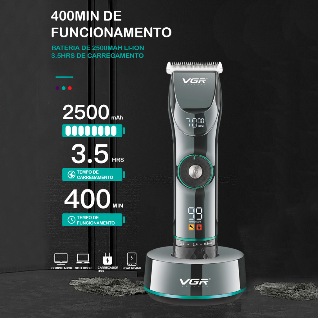 Transforme a sua experiência de cuidados com o Cortador de Cabelo Profissional VGR OI VIDA OIV-256, uma ferramenta de alta performance projetada para oferecer cortes precisos e personalizados. Descubra todas as suas características excepcionais: Lâminas de Precisão: Equipado com lâminas de nova tecnologia, garante um desempenho superior e cortes impecáveis. Ideal para um acabamento profissional. Controle de RPM: Com um botão de ajuste de 5500 a 7000 RPM, você pode personalizar a velocidade de corte com 15 passos variáveis para se adequar a diferentes tipos de cabelo e estilos. Botão de Ligar/Desligar: Simples e intuitivo, proporciona um uso fácil e confortável. Visor LED: O display LED oferece informações claras sobre o estado da alimentação e avisa sobre a necessidade de adição de óleo para manter a lâmina em condições ideais. Ajuste do Comprimento da Lâmina: Selecione e bloqueie facilmente o comprimento desejado com 5 ajustes de precisão, variando de 0,8 mm a 2,0 mm, para um corte personalizado e exato. Carregamento USB: Inclui um cabo USB para que você possa carregar o aparelho de maneira conveniente, onde quer que esteja. Bateria de Lítio 2500mAh: Oferece até 400 minutos de operação contínua com apenas 3.5 horas de carregamento, garantindo longa autonomia para sessões prolongadas de corte. Proteção IPX5: Resistente à água para facilitar a limpeza e a manutenção do aparelho. Voltagem Bivolt: Compatível com 110-220V 50/60Hz, tornando-o ideal para viagens internacionais. Itens Inclusos: Cortador de Cabelo 6 Pentes Guia (para ajuste de comprimento) Escova de Limpeza Óleo Lubrificante Cabo USB Base de Carregamento (para armazenamento e carregamento conveniente) O VGR OI VIDA OIV-256 é a escolha definitiva para quem busca um cortador de cabelo versátil, com tecnologia avançada e recursos de personalização. Adquira o seu agora e experimente um corte de cabelo com precisão e eficiência incomparáveis! Bem-vindo à VGR OI VIDA: Excelência em Cuidados Pessoais Na VGR OI VIDA, excelência em cuidados pessoais é nossa prioridade. Oferecemos uma seleção excepcional de cortadores de cabelo e barbeadores projetados para elevar sua rotina de cuidados. Nossos produtos importados garantem qualidade premium, com cada item cuidadosamente selecionado para oferecer desempenho impecável e durabilidade incomparável. Nossa equipe está dedicada a fornecer um serviço excepcional, desde orientação na escolha até suporte pós-venda, garantindo sua total satisfação. Explore nossa coleção exclusiva e descubra como podemos ajudá-lo a alcançar o visual perfeito com facilidade e estilo na VGR OI VIDA.