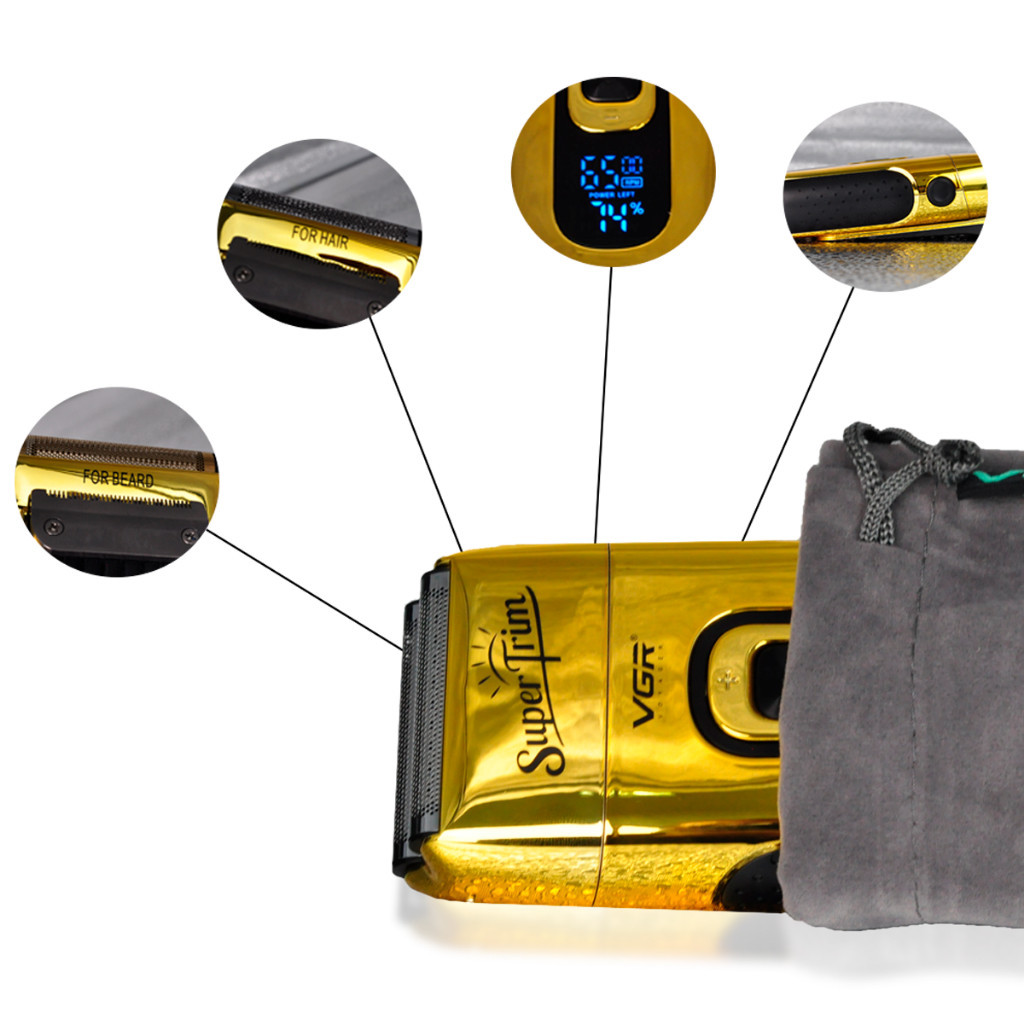 Cortador De Cabelo Profissional Vgr Oiv-332 Bivolt Dourado Display LCD Barba Cabelo Barbeiro Sem Fio