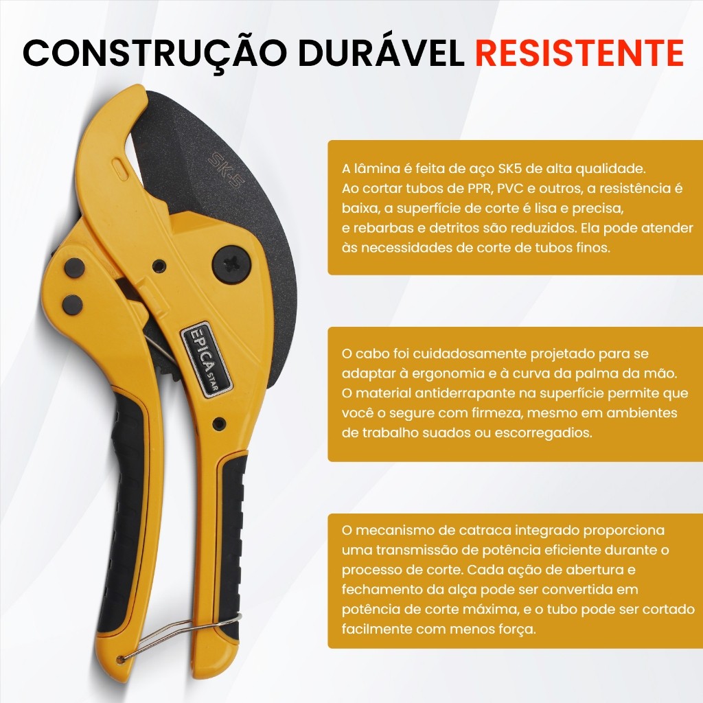 Cortador de Tubos EPICA STAR - Aço SK5, Corte Preciso até 42mm, Ideal para PVC, PPR e Mangueiras