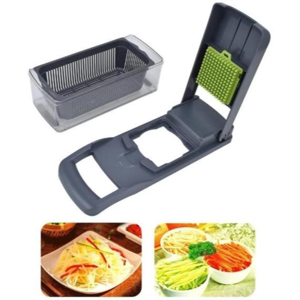 ✅ Características Principais 🔪 Versatilidade Superior: Equipado com 7 lâminas afiadas de aço inoxidável, permite cortar, picar, fatiar, triturar e ralar diversos tipos de vegetais com facilidade e uniformidade. 🛡️ Segurança Reforçada: Conta com um sistema de proteção para as mãos e base antiderrapante, garantindo total segurança no manuseio e evitando acidentes. 👌 Design Ergonômico: O formato confortável e funcional do cortador oferece uma pegada firme, tornando o uso mais ágil e sem esforço. 🧼 Fácil de Limpar: As peças são removíveis e o design desmontável facilita a higienização após o uso, mantendo o produto sempre limpo e durável. 📏 Compacto e Funcional: Ideal para qualquer cozinha! Seu tamanho compacto facilita o armazenamento e o uso diário, sem ocupar espaço. 🥗 Kit Completo para Sua Cozinha Includes: 7 lâminas intercambiáveis de aço inoxidável Separador de ovos Descascador Protetor de mãos Cesto de drenagem Recipiente com capacidade de 2L Ideal para cortar: tomates, pimentões, cenouras, beterrabas, pepinos, cebolas, alho, aipo e muito mais! O cesto de drenagem embutido permite lavar e escorrer os alimentos diretamente no recipiente, garantindo praticidade sem bagunça. ⚠️ Dicas de Uso As lâminas são extremamente afiadas – manuseie com cuidado e mantenha fora do alcance de crianças. Corte os alimentos em pedaços menores se necessário, para evitar que fiquem presos. Para frutas e legumes mais macios (como tomates), utilize as lâminas maiores. Para alimentos com casca dura (como abóbora ou batata-doce), recomenda-se retirar a casca antes do uso. 📐 Especificações Técnicas Material: ABS + stainless steel Volume: Cesto 1,5L / Recipiente 2,0L Dimensões: 32 x 12 x 12 cm Peso: 850g 🌟 Torne seu dia a dia na cozinha mais prático e eficiente! Adquira agora o Cortador de Vegetais Multifuncional e leve suas habilidades culinárias a um novo patamar. Mais agilidade, segurança e organização no preparo das suas refeições favor