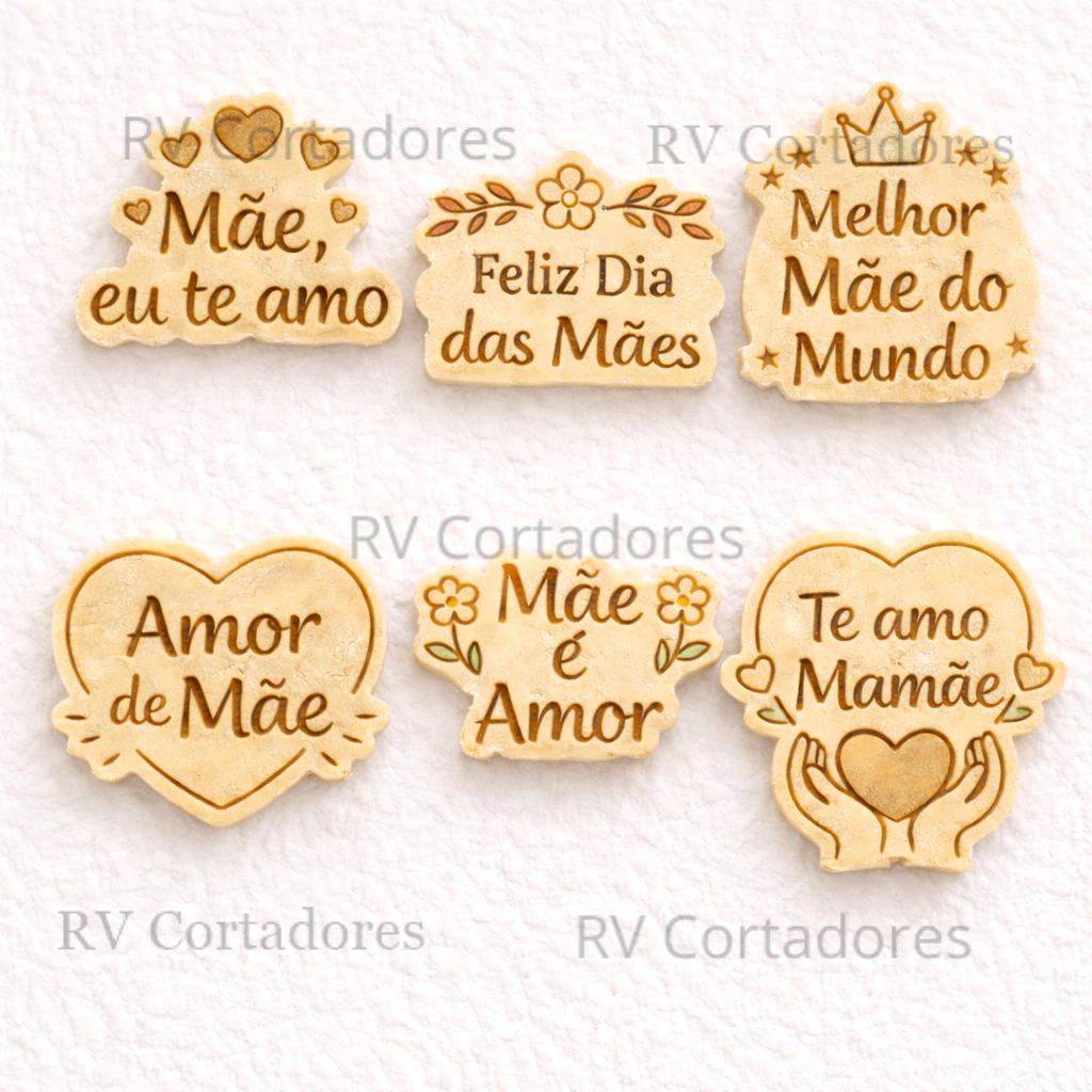 Cortadores Dia das Mães - Kit Amor de Mãe - 6pçs Biscoitos Pasta Americana Biscuit Marcador Massa