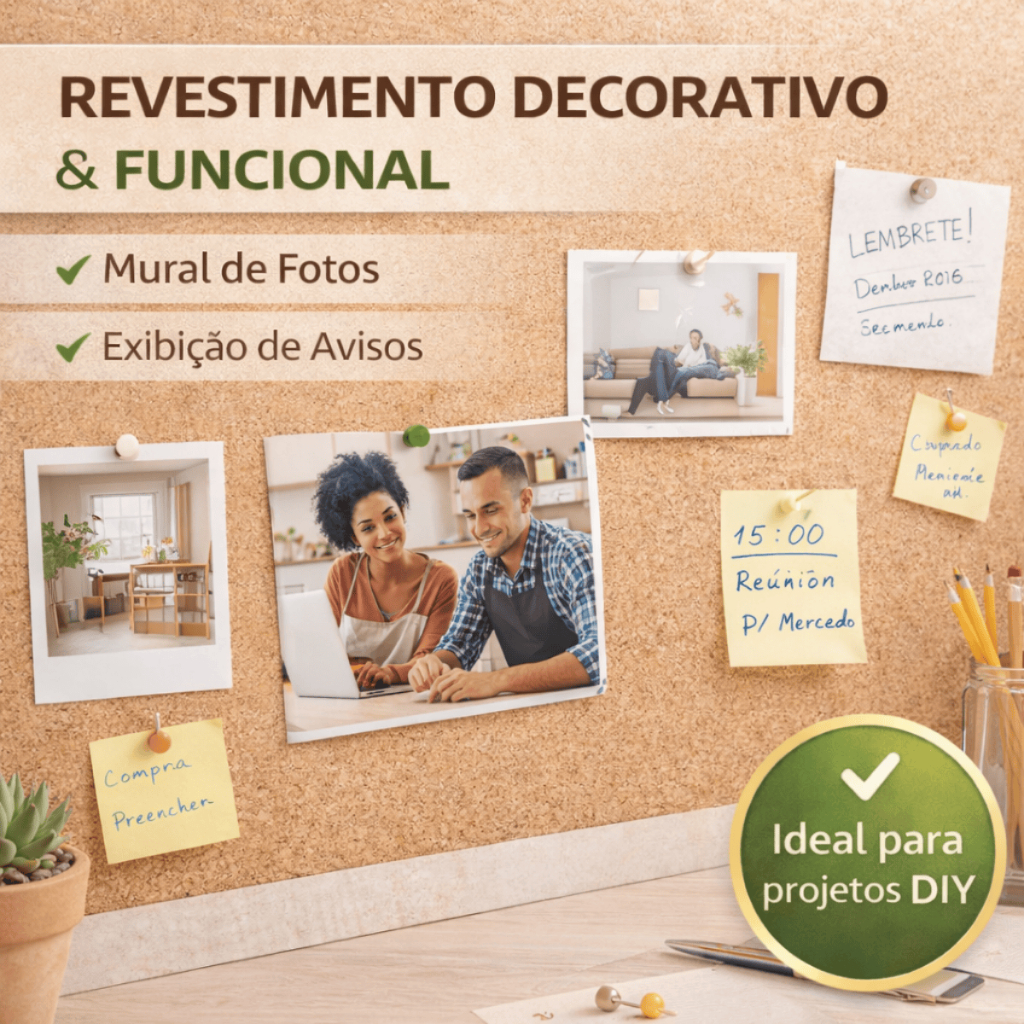 🌿 CORTIÇA EM ROLO ADESIVADA – 1,6mm DE ESPESSURA A cortiça adesivada é a solução perfeita para quem busca revestimento prático, decorativo e funcional. Pode ser usada em paredes, móveis e diversas superfícies, funcionando como painel de avisos, mural de fotos ou até para isolamento acústico e térmico. ✨ Visual natural + aplicação fácil = projeto pronto em minutos! ✨ Principais Benefícios ✅ Revestimento decorativo e funcional ✅ Funciona como mural de avisos (alfinetes) ✅ Ajuda no isolamento acústico e térmico ✅ Toque natural e aconchegante ✅ Fácil de aplicar (tipo papel contact) ✅ Ideal para projetos faça você mesmo (DIY) 📏 Tamanhos Disponíveis (escolha na variação): 📌 90 x 60 cm 📌 60 x 45 cm 📐 Espessura: 1,6mm 🏠 Indicado para: ✔️ Paredes ✔️ Escritórios e home office ✔️ Quartos e salas ✔️ Escolas ✔️ Revestimento de móveis ✔️ Murais de fotos e lembretes ✔️ Projetos DIY e artesanato 🛠️ Modo de Aplicação 1️⃣ Limpe bem a superfície 2️⃣ Remova o papel protetor 3️⃣ Aplique pressionando suavemente ⚠️ Superfície deve estar lisa, limpa e seca. 🚚 Produto à pronta entrega 📦 Envio rápido e bem embalado