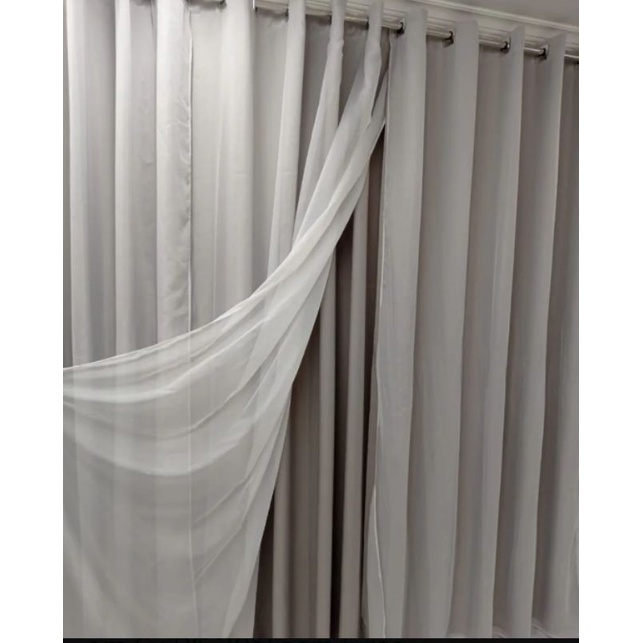 contém 01 cortina microfibra com forro voil 8,00larg x 2,50 alt ilhós cromado tecido: 100% poliester