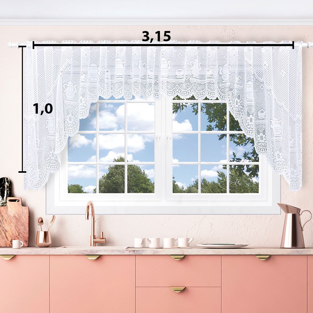 Cortina Bandô Renda Cozinha Sala Capri Bule 3,15 x 1,00 m OU Capri Floral 2,95 x 1,00 Branca / Bege/ Marrom