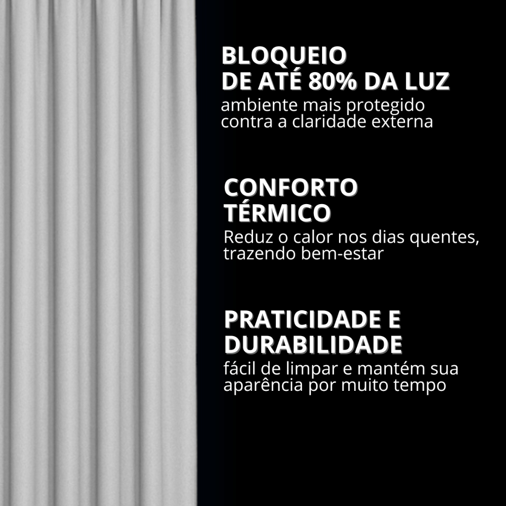 | Cortina Blackout em Tecido Premium Corta Luz Blecaute | R$ 79,90 | 43% | 4.8/5 | 8.1 mil |