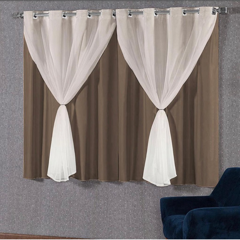Cortina Blackout Blecaute Uma Unidade/Lado Com Voil Liso Corta 100% Luz Sala Quarto - 1,40m x 1,80m
