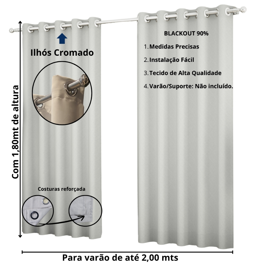 Cortina Blackout Corta Luz Tecido 2,00 x 1,80 Sala e Quarto Bloqueio de Luminosidade