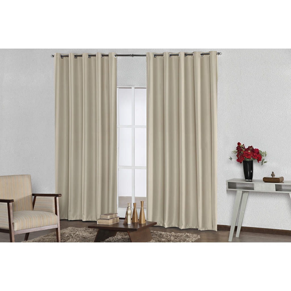 CORTINA de Blackout em Tecido MEDIDAS: 4,00m largura x 2,50m altura (medida esticada) Ilhos Cromados . Não Acompanha Varão. consumo total de tecido 4 metros CORES: TABACO, PRETO, PALHA , AVELÃ, GELO. (Com ilhos Cromados) COMPOSIÇÃO: 100% Poliéster CORTINA PARA VARÃO SIMPLES DE 3 METROS
