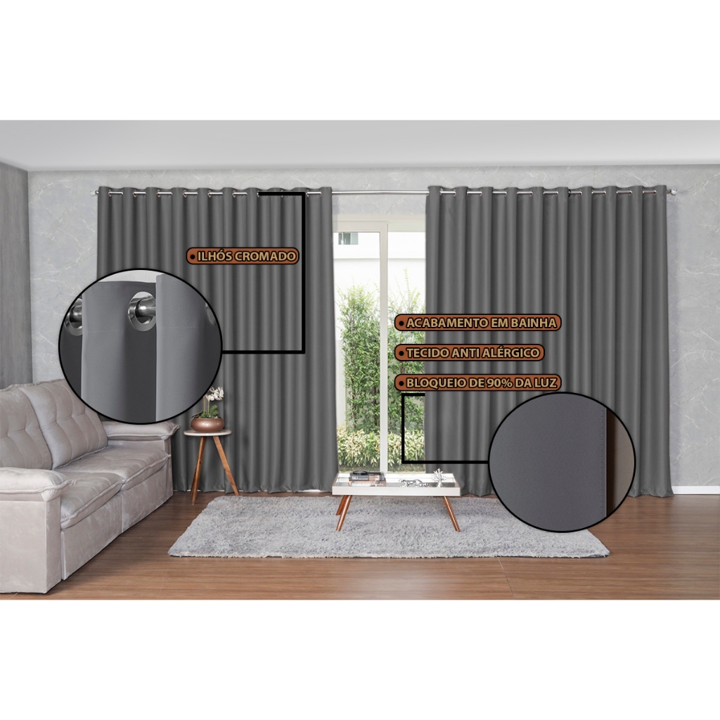 | Cortina Blackout em Tecido Corta Luz 6,00m x 2,70m Várias Cores este produto | R$ 248,99 | 14% | 4.9/5 | — |