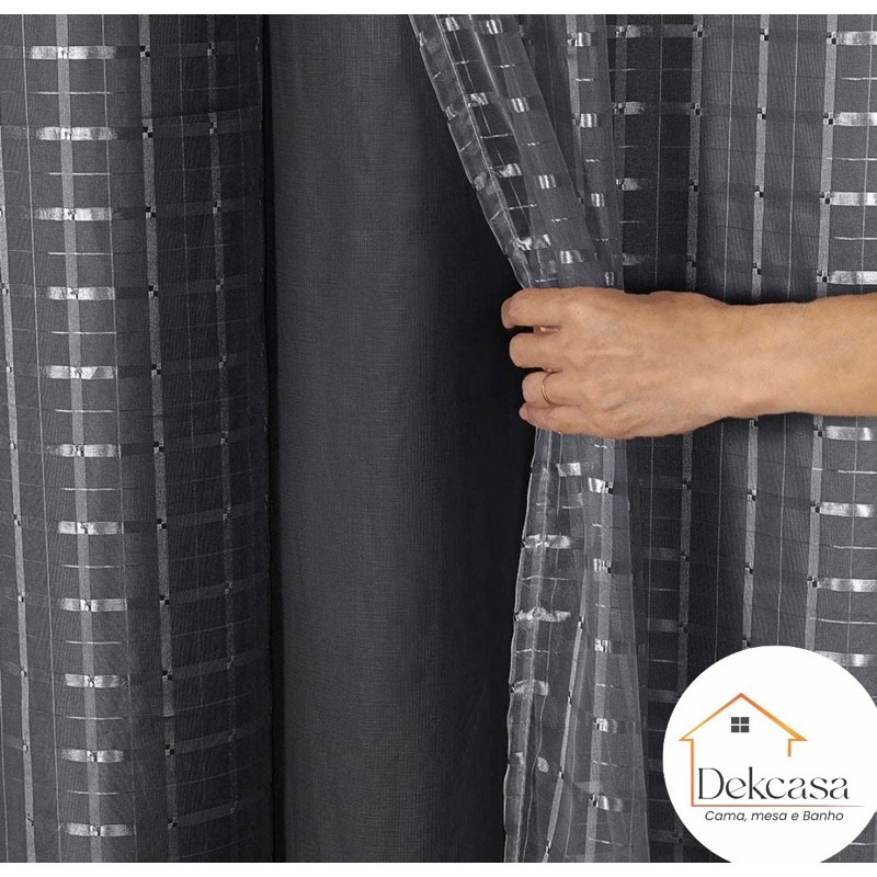 cortina Blackout PVC 3,00x2,80 com tecido voil xadrez