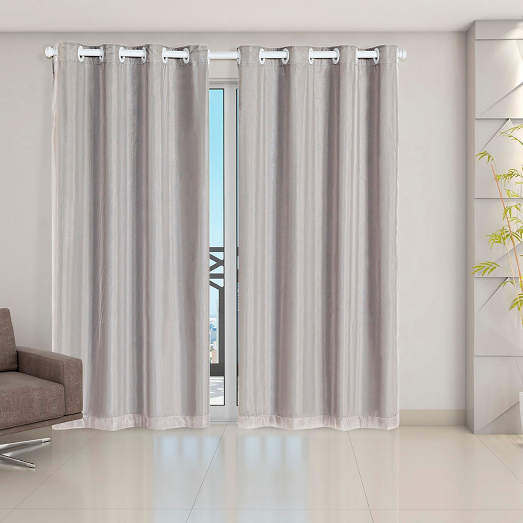 Cortina Blackout Cinza com Voil Liso 2,80 m largura (esticado) x 2,30 m altura A cortina possuí duas partes, o blackout de PVC e por cima o Tecido Voil. O PVC é um tipo de plástico feito especialmente para cortinas. O PVC é da cor cinza, conforme mostramos na foto, é a parte cinza que faz vedar 99 % a luz. Por cima do PVC descrito anteriormente, a cortina possuí um tecido fino, o Voil, costurado na parte superior do blackout, dando uma estética excelente para a cortina. Contém: 01 Cortina 2,80 M (esticado, para varão de 2,00 metros) x 2,30 M no total, sendo: 02 Partes de 1,40 M x 2,30 M com 16 ilhoses no total de 28 mm Indicada para varão simples de até 2,00 M, é possível utilizar tanto o varão grosso (28 mm), quanto o fino (19 mm) (*Varão não incluso) Composição: Forro: 100% Policloreto de Vinila Voil: 100% Poliéster