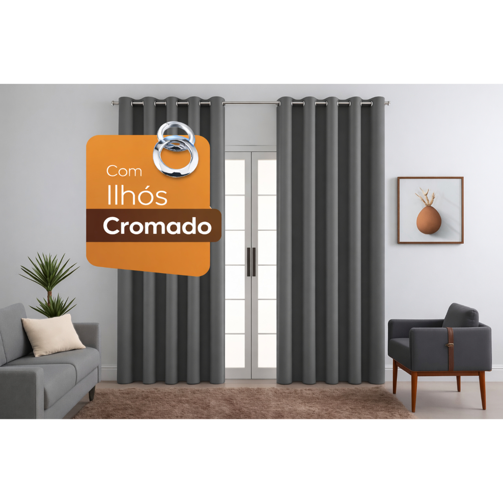 Cortina Blecaute Blackout Tecido Grosso Corta Luz Vários Tamanhos Para Varão Transforme seu ambiente com sofisticação e conforto total! A Cortina Blackout em Tecido Premium é a solução definitiva para quem busca bloquear a claridade sem abrir mão da elegância. Diferente dos modelos de plástico (PVC), nosso tecido bloqueia até 85-100% da luz, proporcionando um caimento perfeito, fluidez e um toque agradável ao ambiente. Ideal para quartos, salas de TV ou escritórios, ela transforma o dia em noite, garantindo o sono reparador que você merece ou a escuridão ideal para filmes. 🔥 Principais Benefícios ✅ Bloqueio Total de Luz (Blackout): Escuridão máxima para um sono profundo ou controle absoluto da luminosidade na sua sala de TV. ✅ Isolamento Térmico e Acústico: Reduz o calor excessivo no verão e ajuda a manter o ambiente aquecido no inverno, além de abafar ruídos externos. ✅ Tecido Sofisticado (Não é plástico): Aparência moderna, macia e elegante que valoriza a decoração do seu lar. ✅ Privacidade Garantida: Impede totalmente a visão de fora para dentro. ✅ Durabilidade e Fácil Manutenção: Lavável na máquina, material 100% poliéster de alta resistência. Dica de Ouro Para a Decoração: "Para que a cortina tenha um caimento bonito e ondulado (efeito franzido), recomendamos que o varão seja sempre menor que a largura da cortina. Exemplo: Para uma cortina de 4,00m, utilize um varão de no máximo 2,50m a 3,00m." · Diferenciação de Material (Tecido vs. PVC) Muitos compradores detestam cortinas de plástico que fazem barulho. Toque e Caimento: "Diferente dos modelos de PVC (plástico), nossa cortina é de tecido blackout real. Isso significa que ela não tem cheiro forte, não esquenta o ambiente como o plástico e tem um caimento muito mais elegante e fluido." Detalhes do Acabamento O cliente quer saber se o produto é bem feito. Costura: "Bainhas laterais e inferiores feitas com costura reforçada e acabamento invisível, garantindo que a cortina não desfie com o tempo." Ilhoses: "Ilhoses de polipropileno de alta resistência, que não oxidam (não enferrujam) com a umidade ou após a lavagem." Como Medir: "Meça a largura da sua janela e adicione 20cm de cada lado (sobra lateral) para evitar que a luz 'vaze' pelas bordas. Para a altura, meça do varão até o chão ou até 15cm abaixo do peitoril da janela." 🛠️ EspecificaçõesTécnicas Medidas: 2,00m x 1,40m: (2 partes de 1,00m x 1,40m) com 12 ilhoses 2,80m x 1,40m: (2 partes de 1,40m x 1,40m) com 12 ilhoses 2,80m x 1,60m: (2 partes de 1,40m x 1,60m) com 12 ilhoses 2,80m x 1,80m: (2 partes de 1,40m x 1,80m) com 12 ilhoses 2,80m x 2,30m: (2 partes de 1,40m x 2,30m) com 12 ilhoses 2,80m x 2,50m: (2 partes de 1,40m x 2,50m) com 12 ilhoses 3,00m x 2,50m: (2 partes de 1,50m x 2,50m) com 16 ilhoses 3,00m x 2,80m: (2 partes de 1,50m x 2,80m) com 16 ilhoses 4,00m x 2,50m: (2 partes de 2,00m x 2,50m) com 20 ilhoses 4,00m x 2,80m: (2 partes de 2,00m x 2,80m) com 20 ilhoses 5,00m x 2,50m: (2 partes de 2,50m x 2,50m) com 24 ilhoses 5,00m x 2,80m: (2 partes de 2,50m x 2,80m) com 24 ilhoses 6,00m x 2,50m: (2 partes de 3,00m x 2,50m) com 28 ilhoses 6,00m x 2,80m: (2 partes de 3,00m x 2,80m) com 28 ilhoses Composição: 100% Poliéster (Tecido Blackout de alta densidade). Fixação: Ilhós Cromados (Redondos) que deslizam facilmente no varão. Vedação: Alta (Bloqueia até 90% da luz, dependendo da cor - cores mais escuras vedam mais). Conteúdo: 01 Cortina Blackout (dividida em 2 partes). 🏡 Onde usar? Quarto: Para noites de sono ininterruptas. Sala de TV: Para evitar reflexos na tela. Home Office: Para melhor concentração. 📦 Dúvidas Frequentes A cortina vem com varão? Não, o varão é vendido separadamente. O tecido é blackout dos dois lados? Sim, o tecido blackout é composto para bloquear a luz em toda a sua trama. Como lavar? Pode ser lavada na máquina (modo delicado), não usar alvejante e secar à sombra. Garanta a sua Cortina Blackout Premium agora e tenha o ambiente dos seus sonhos!