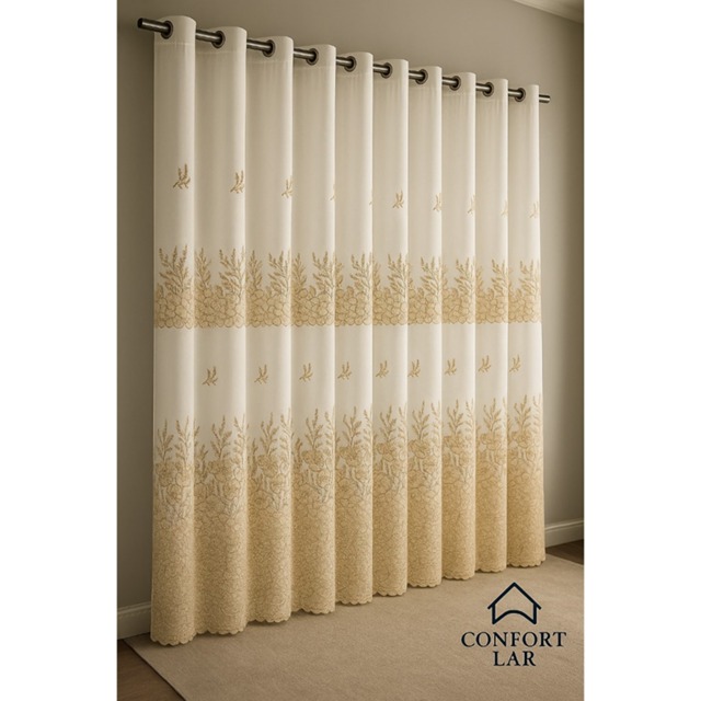 Cortina Bordada de Voil com Forro – 3,00x2,60m – Preço de Fábrica