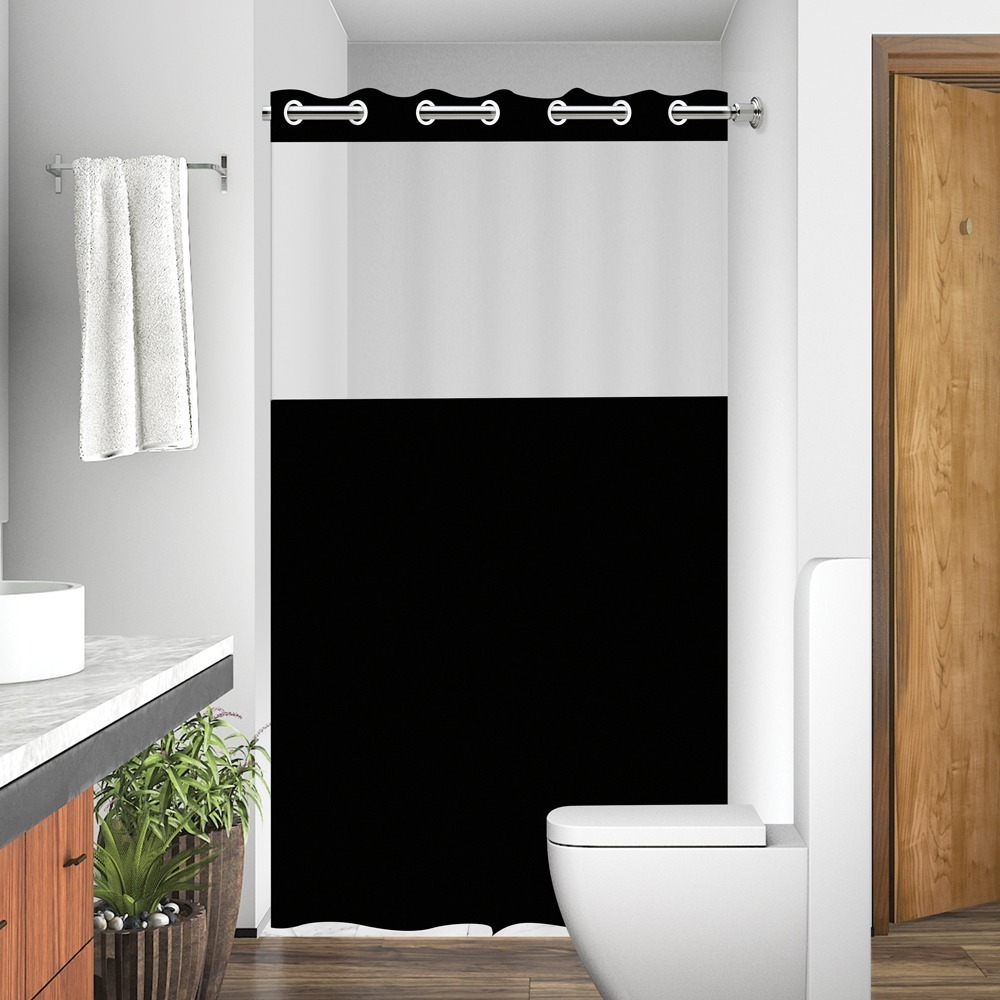 Cortina Box com Visor Transparente P/ Banheiro Ilhós PVC Anti Mofo Resistente Lisa / Estampada