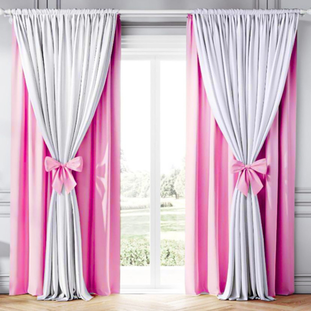Cortina Clássica Xales Duplo Com Detalhes Em Laço 1,80m Altura x 3,00 m Largura Menina e Menino