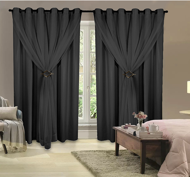 Cortina Corta Luz 4,00m X 2,80m 100% Blackout Com Voil Preto Para Sala Ou Quarto Para Varão Simples