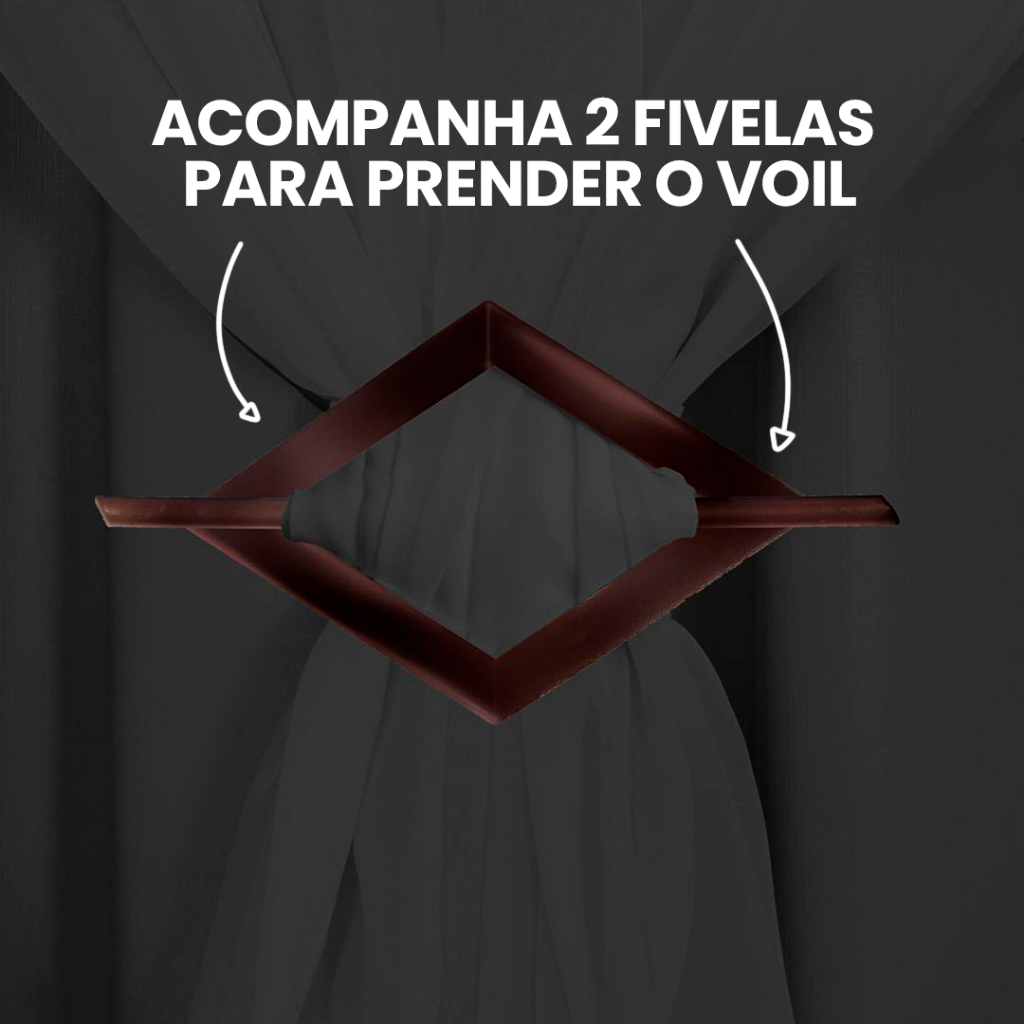 Cortina Blackout Corta Luz Com Voil Composição do produto: Forro 100% Policloreto de Vinila (PVC) Tecido superior em Voal 100% Poliéster Acabamento feito na bainha O produto é confeccionado em PVC, sendo um tipo de plástico especialmente feito para confecção de cortinas, possuindo uma textura na parte frente que imita tecido. A parte de trás do PVC é da cor cinza, sendo a parte cinza responsável por vedar 100 % a luz, com isso ajuda na preservação de pisos e móveis do envelhecimento que o sol causa, além de também ser muito eficiente no controle da temperatura. Conteúdo da embalagem: 01 Cortina Blackout 4,00M de largura x 2,80M de altura Cortina dividida em duas partes iguais (Varão não incluso) Ilhós: Desliza facilmente sobre o varão Possui ilhós de 28mm Não oxida Não enferruja Sobre o produto: Sombreamento total de 100% Produto para varão simples Enviado em embalagem própria e segura para cortinas